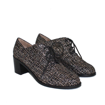 Schnürer im Mokassin-Stil aus schwarzem und goldenem Stoff im Chanel-Stil. Die Schnürsenkel gewährleisten hervorragende Passform...